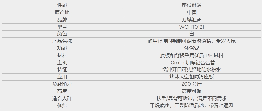 浴缸座椅的构造稳定和安全,具有防滑脚和坚固的底座。这意味着客户可以舒适和自信地淋浴。该座椅还配有便盆,非常适合那些卧床不起或实际上灵活性有限的人。